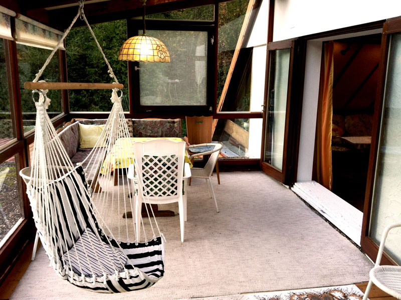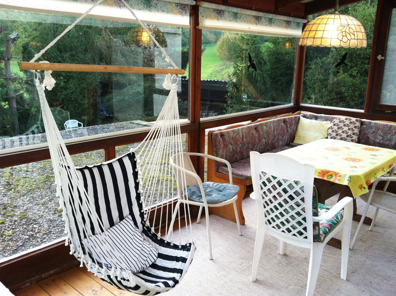 - möbelierter Wintergarten, 18 qm, herrlicher Panoramablick auf Wald und Wiesen